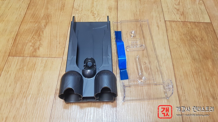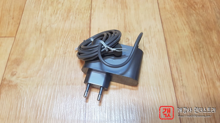 다이슨 본체를 거치할 수 있는 거치대와 충전기가 포함되어 있습니다. 중요한 건 저 충전기를 위 거치대에 고정시켜 본체를 끼우면 자동으로 충전이 되게끔 세팅을 할 수 있습니다.